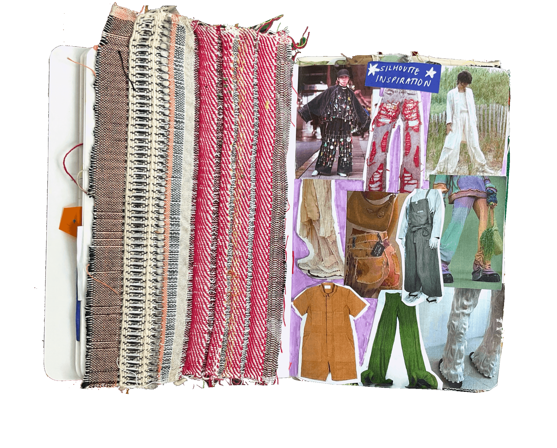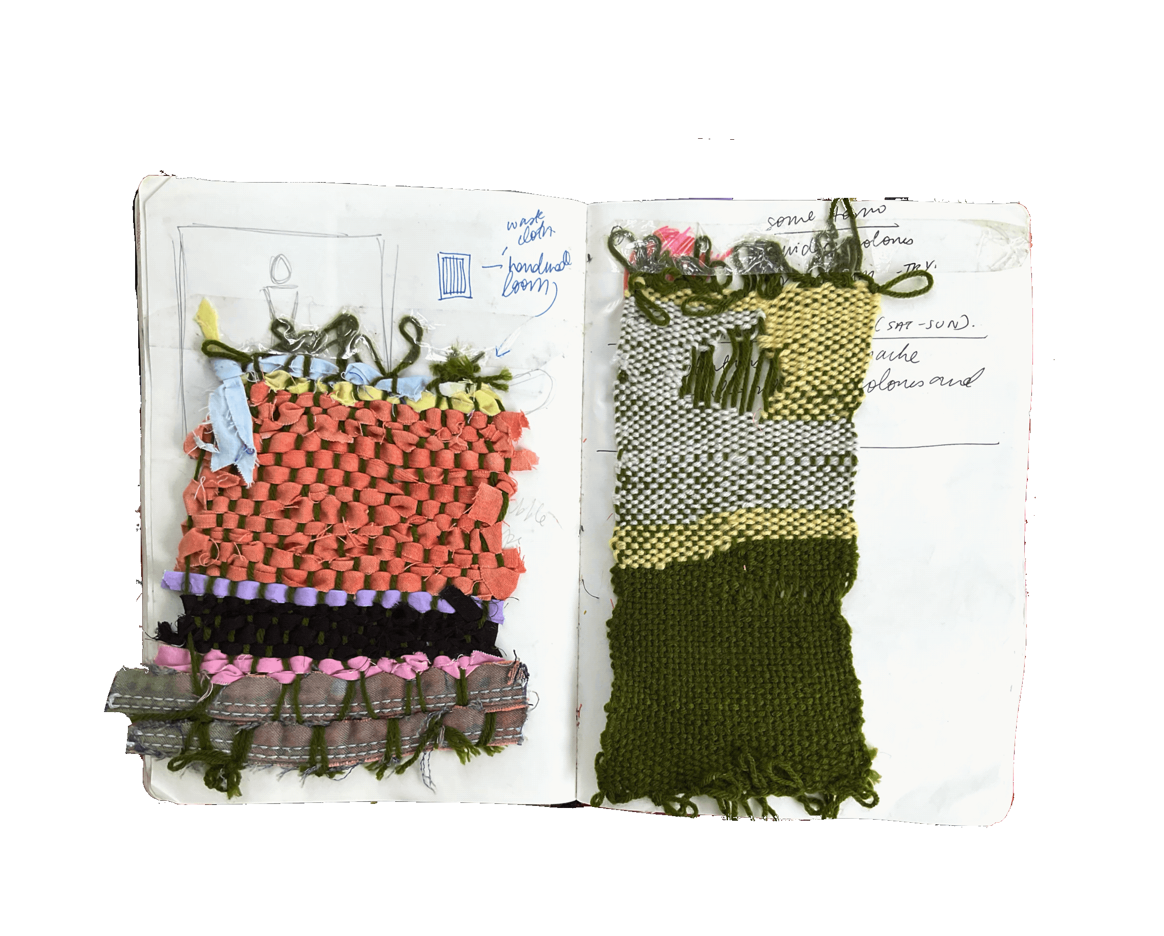 Experiments, starting points, process journals, textile and material swatches, sketchbooks: a brain dump behind the scenes